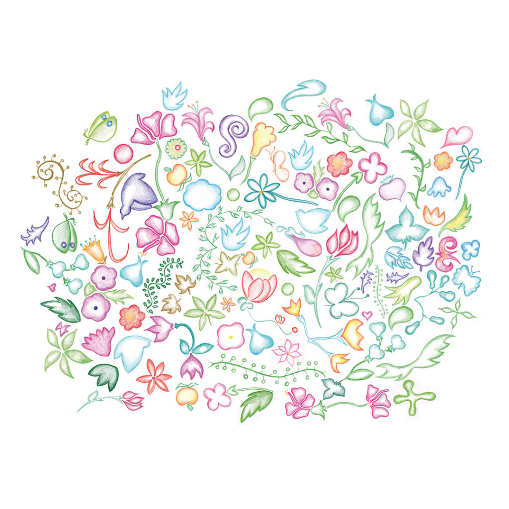 Techniques mixtes : aquarelle, crayon de couleur, peinture et création digitale.