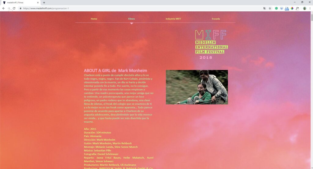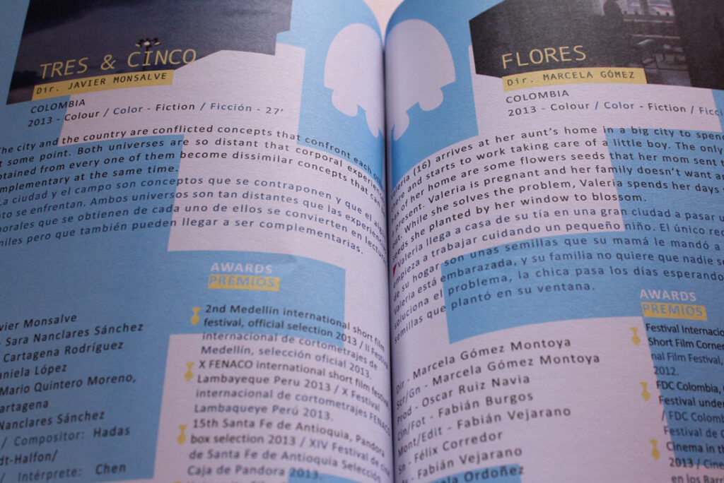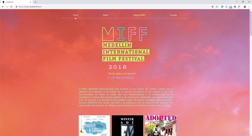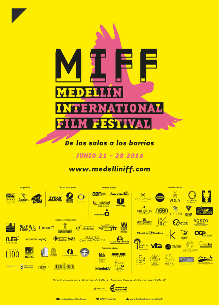 Miff, Medellín International Film Festival (Festival de cinéma, Medellín, Colombie, 2016-2018) / Fidaac, Festival Itinerante De Artes Audiovisuales Colombianas (Édition 2013-2015, éditions française, belge et canadienne).